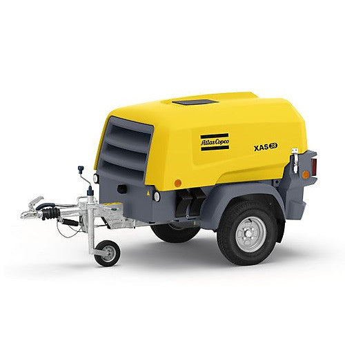 A transportable, diesel powered, industrial air compressor for operating pneumatic tools, equipment, or mains air supply at industrial premises.