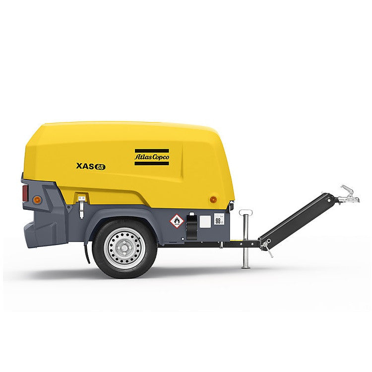 A transportable, diesel powered, industrial air compressor for operating pneumatic tools, equipment, or mains air supply at industrial premises.