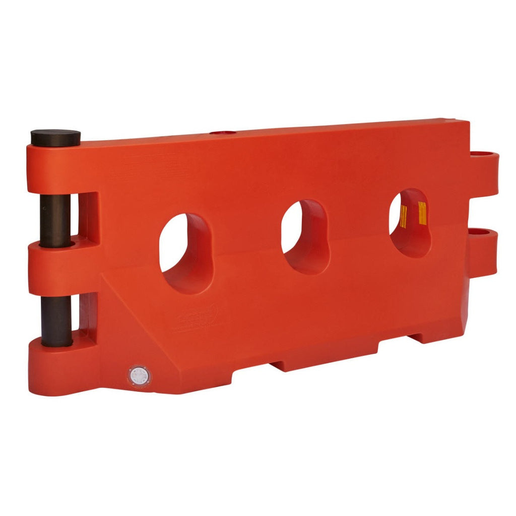 Interlocking, water filled plastic barriers for pedestrian management, and delineating safe work zones.