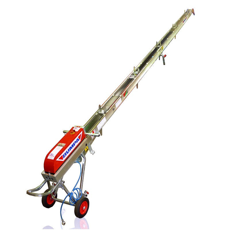 An electric conveyor to safely lift bricks, blocks and tiles on construction sites.