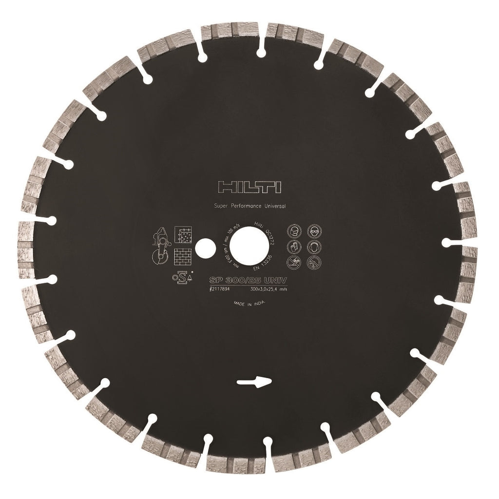 Ultimate diamond cutting blade from Hilti for gas saws, angle grinders and electric cutters, for cutting all types of concrete, masonry and other materials.