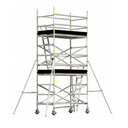 A manoeuvrable, light weight, and very sturdy mobile aluminium scaffolding towers. Narrow platform fits through a standard doorway. Assembled onsite to provide a safe elevated work platform.
